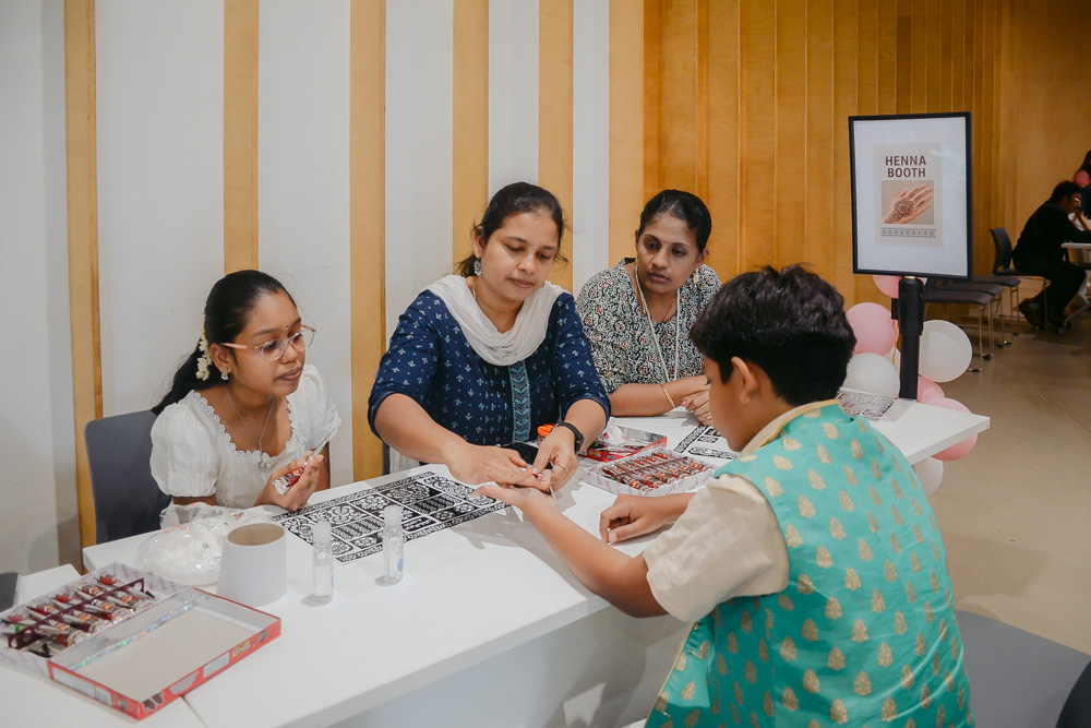 The main co-ordinator for this event, was a shy volunteer, Yeoh Poy Ngo who had courageously assumed the responsibility to assemble a team of volunteers to organise and prepare for the event within a short time span of less than 2 months. The volunteer team chose to spend their leisure time brainstorming and discussing the event’s details, united by a common goal: to make participants feel a sense of homecoming and joy. She further explained that this was the first time the event was organised like a carnival, held around the HYC Great Hall, with booths setup to welcome participants to play games and participate in mini-activities such as Pair-A-Diya, Tower building, Rangoli coloring, and Henna drawing.