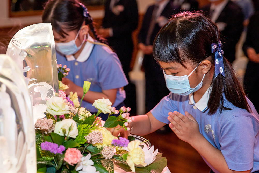 对实业家白允枝来说,浴佛典礼中最摄心的一刻,就是全场齐声唱诵《诚心祈三愿》,人人手中的心灯亮起之际,总是禁不住感动流泪。