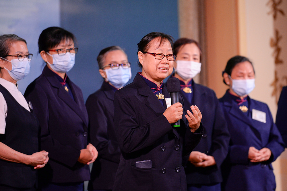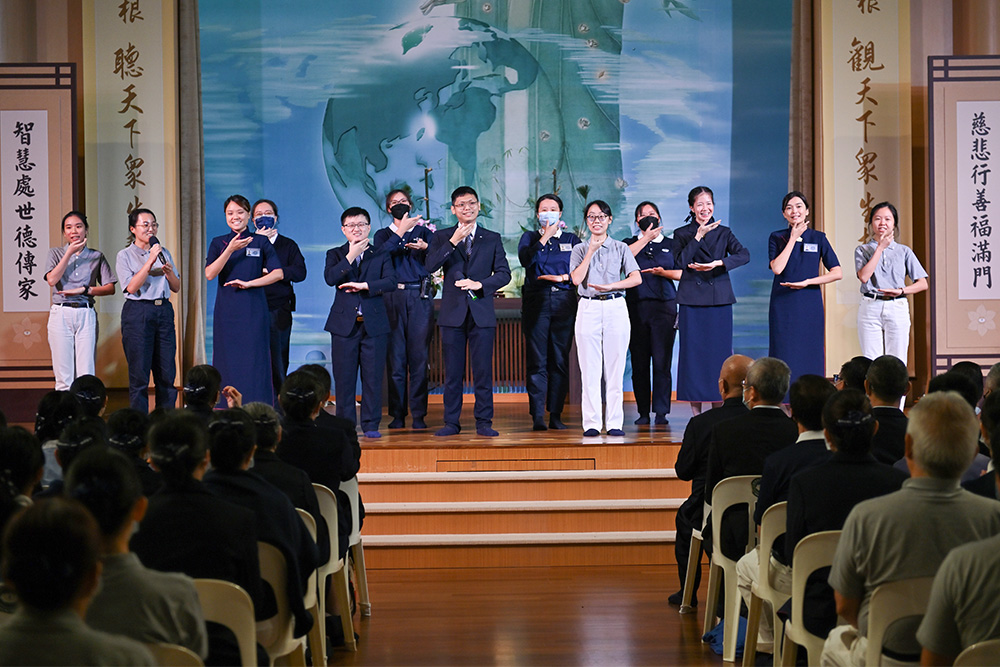 2021年至2023年期间新受证的慈委缓缓走出舞台,柔美的《心愿》手语演绎,为志工场拉下帷幕。(摄/ 蔡佑良)