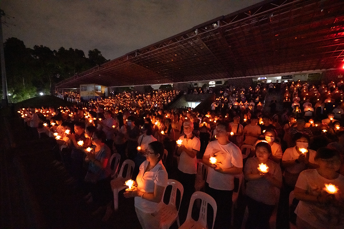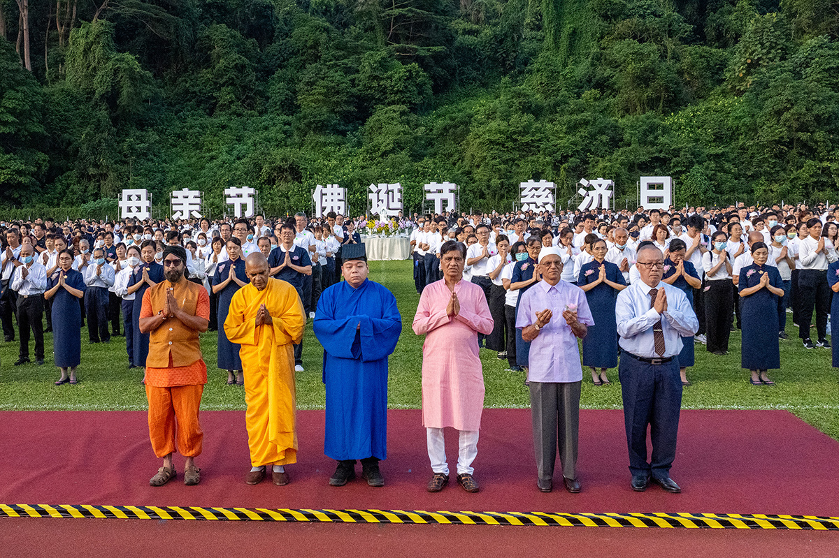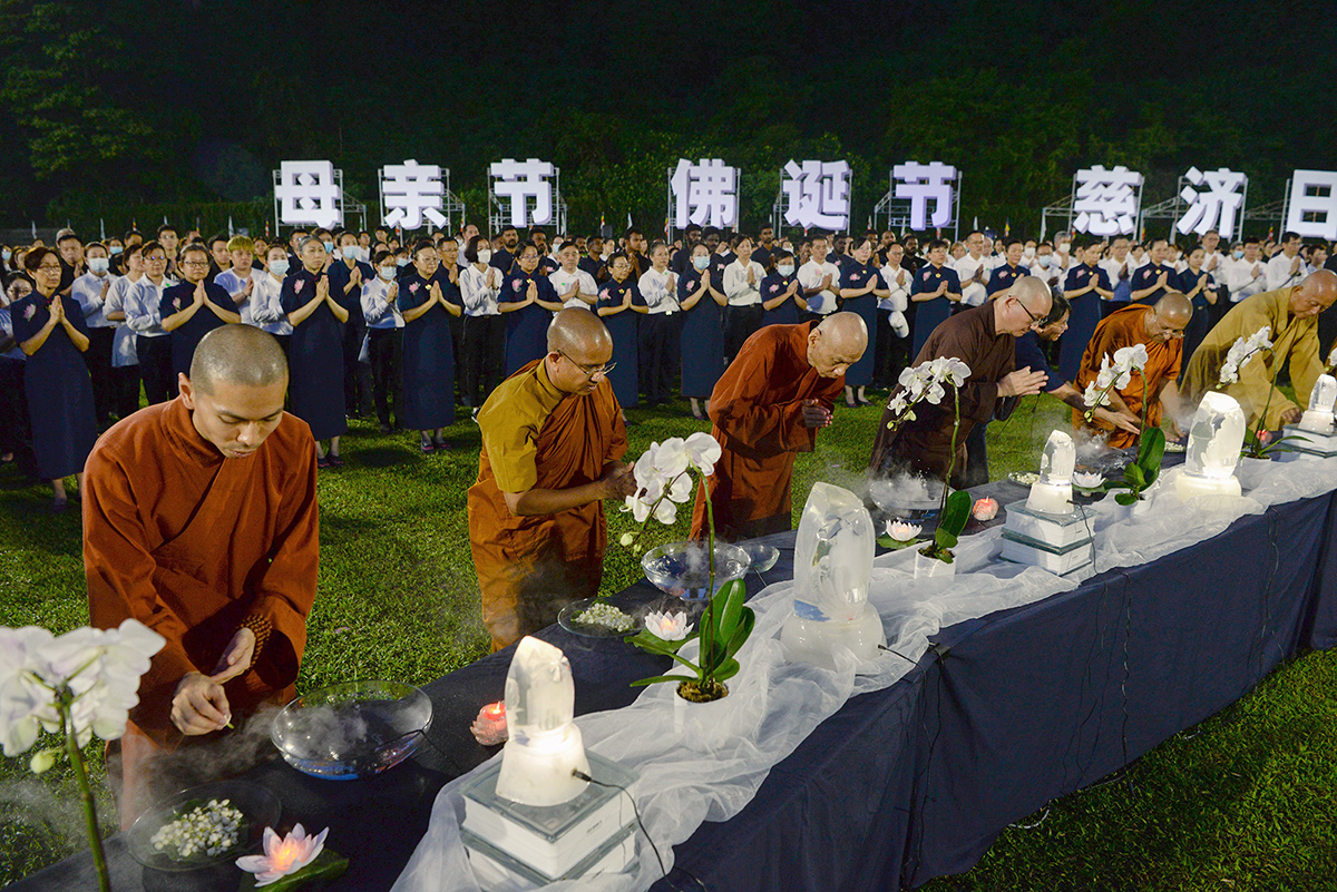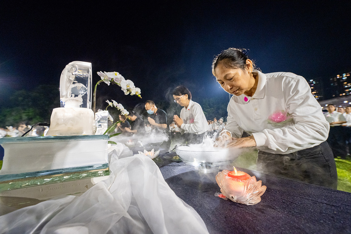 在黑夜中,每个人高举莲花心灯,齐声唱诵《诚心祈三愿》,共同圆满一年一度的盛事。在这个疫情未消、天灾战乱频发的时刻,期待众人人沉淀身心,带着这一刻的清净祥和,效法佛陀的慈悲与智慧,断除痛苦和烦恼,回归清净本性。