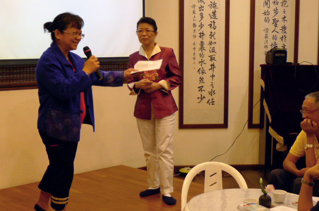 原来,素真师姐写完相声段子,却苦于找不到合作者一起表演。周一晚上开课的彩墨画,她遇到作为随班志工的荟闻师姊,就认真地向她介绍了课程和慈济。荟闻师姊当下就表示要做慈济志工,素真师姊就大胆邀请她来表演相声。荟闻师姊爽快答应了,并在临场时表现得非常风趣幽默,才华得到充分发挥,人人赞好。素真师姊很感恩地说:“真是有愿就有力。”
