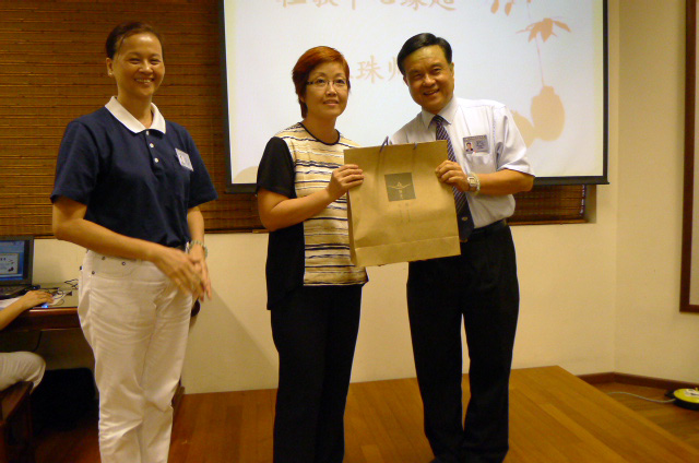 分会执行长刘瑞士给辛勤付出一整年的老师们分赠结缘品。他邀约老师们:“我们的很多资深志工都是社教老师,也希望大家都能成为我们的资深志工。”