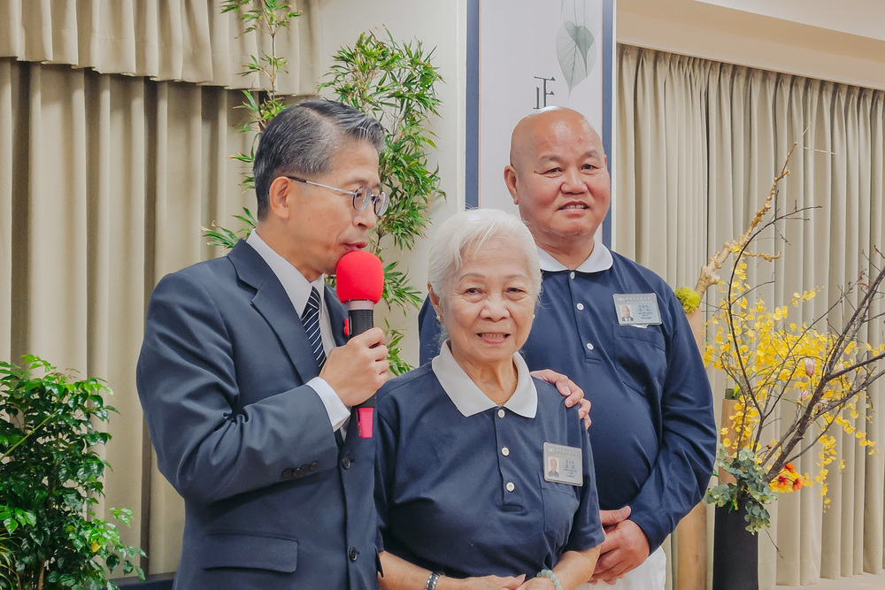 今年80岁,性格温婉娴静的林雅芝,依然持续承担和气生活福田干事,在大大小小活动、外宾接待等,都能看到她忙碌的身影。她留着一头亮丽的白发,人生却不留白,是后进志工学习的典范。